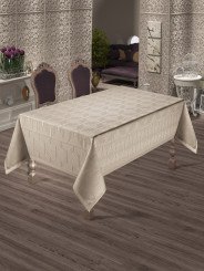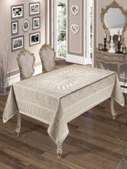 Скатерть круглая "DeNastia" Жаккард бежевый 160*250 см